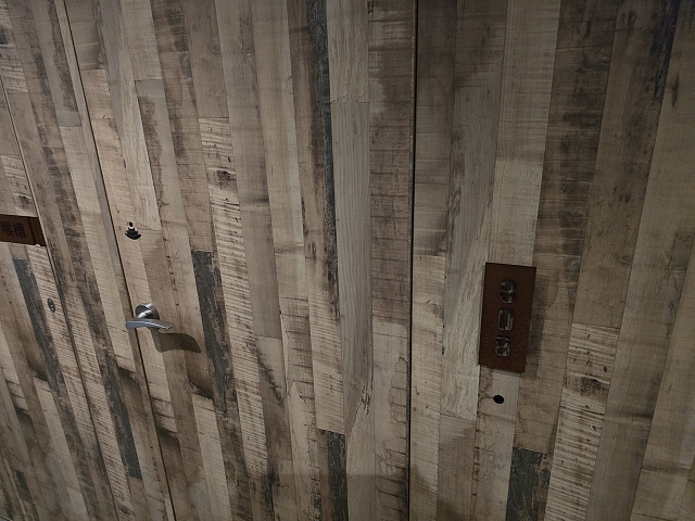 ドアと壁が一体になっていて一瞬戸惑う。おしゃれ~。