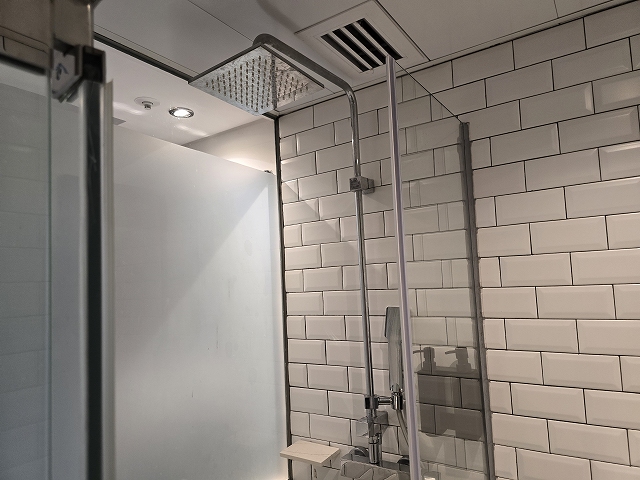 レインシャワーとハンドシャワーが付いています。ボディソープとシャンプーのみ備え付けてありました。